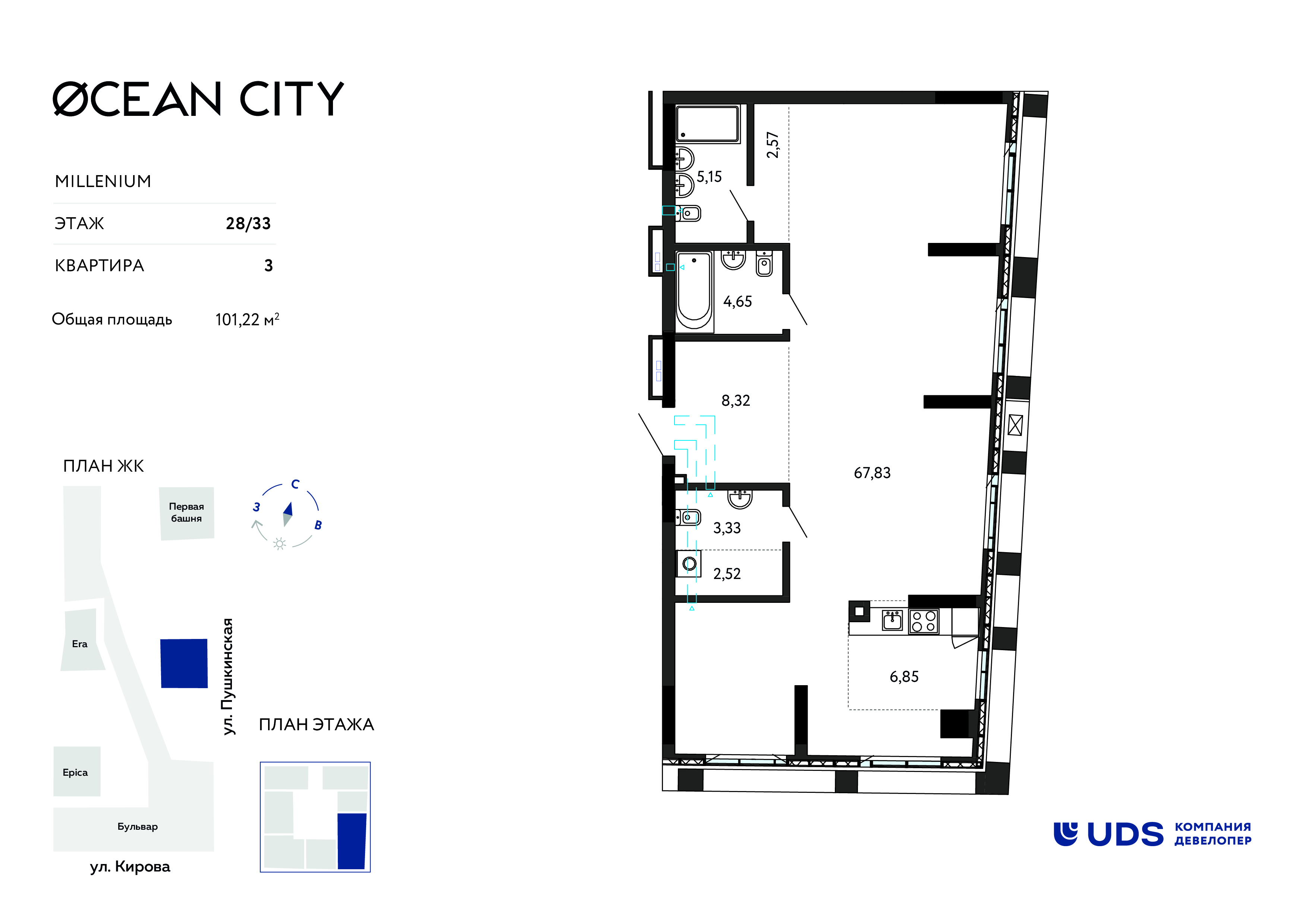 3к квартира 90 м² в ЖК Гранд Панорама